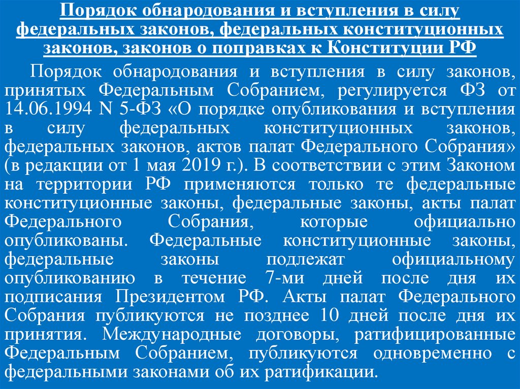 Федеральный закон устанавливает порядок вступления в силуфедеральных конституционных законов, федеральных законов и