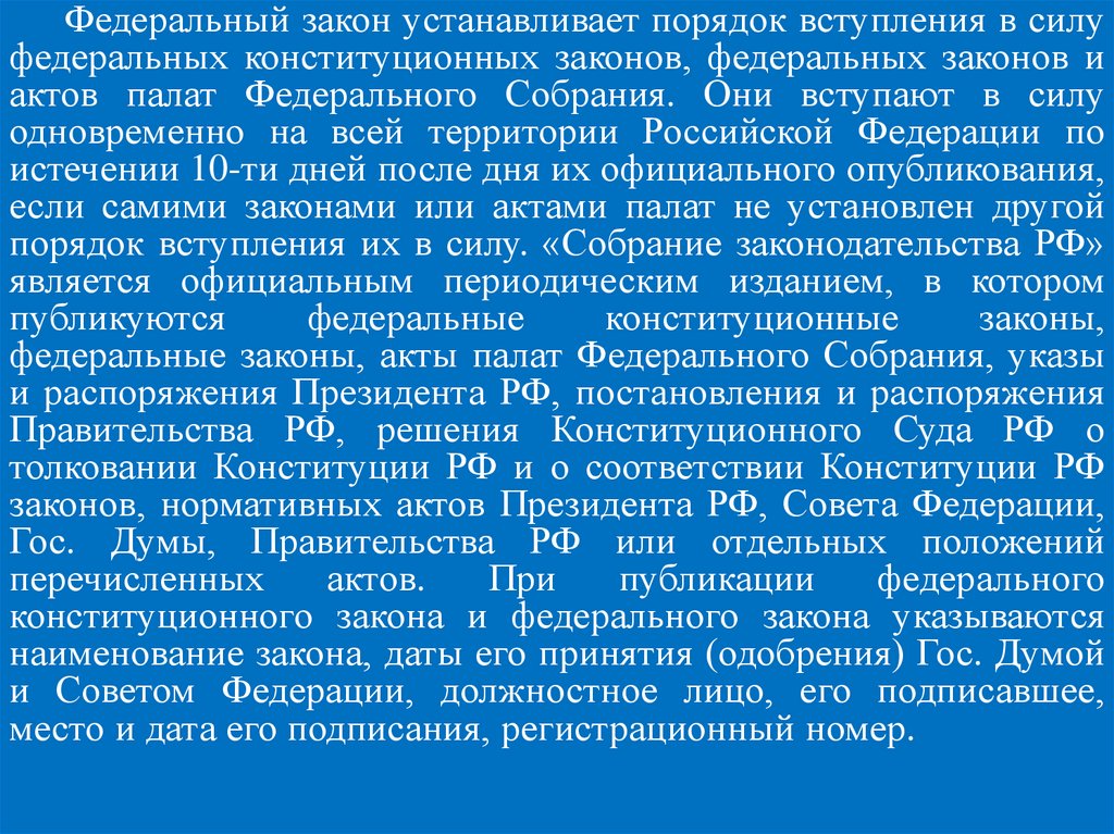 порядок вступления их в силу. «Собрание законодательства РФ»