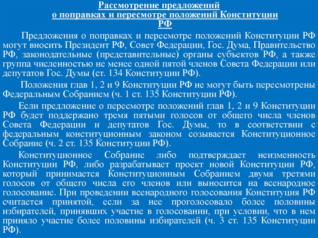Конституции РФ, либо разрабатывает проект новой Конституции РФ,