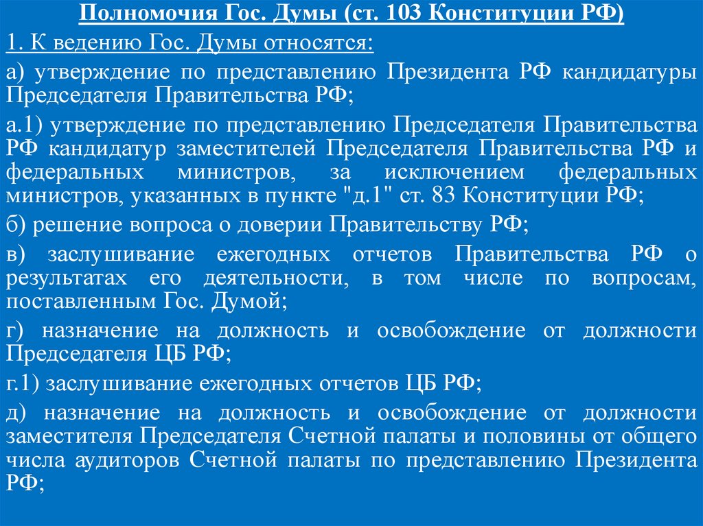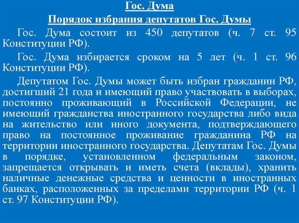 депутатов Гос. Думы (ст. 134 Конституции РФ).