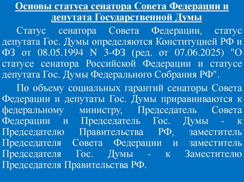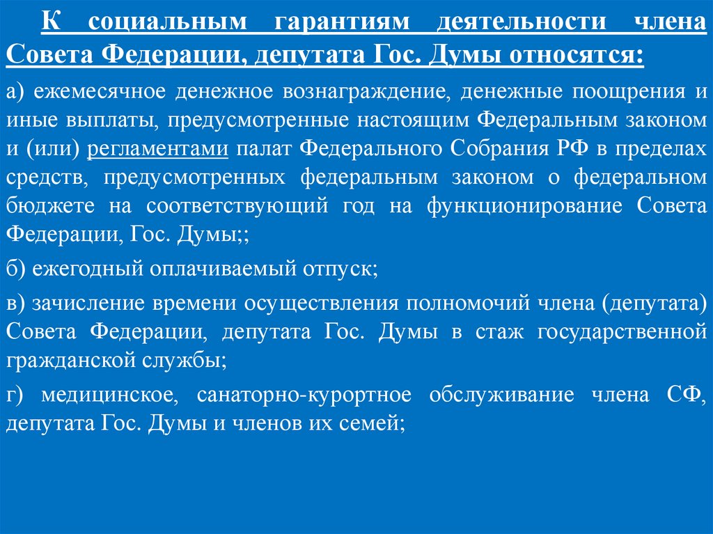 Совета Федерации и депутатов Гос. Думы, то в соответствии с