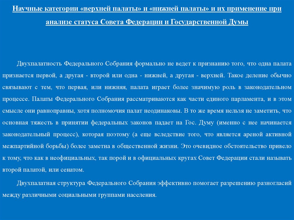 Научные категории «верхней палаты» и «нижней палаты» и их применение прианализе статуса Совета Федерации и Государственной Думы