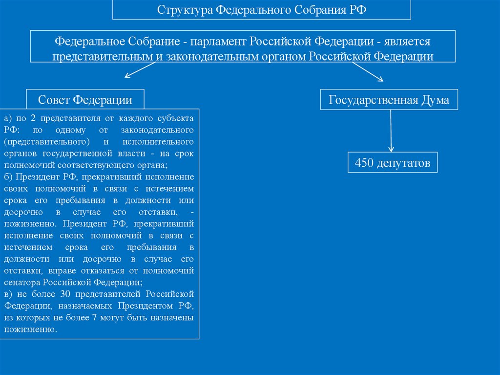 Структура Федерального Собрания РФФедеральное Собрание - парламент Российской Федерации - является