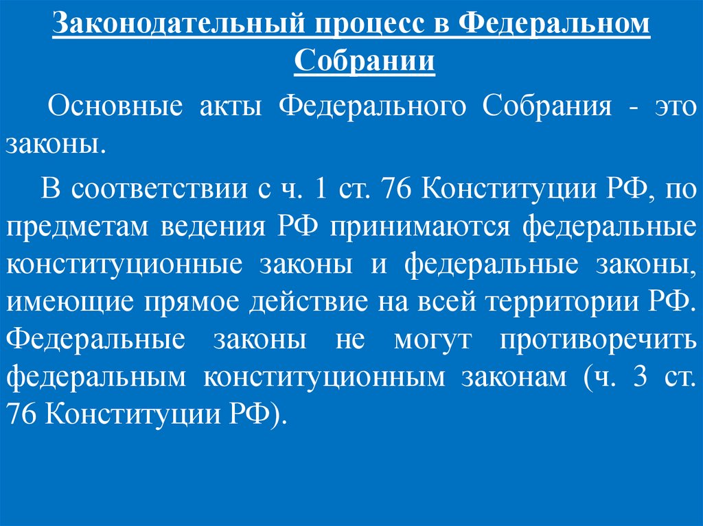 Тема 9. Федеральное Собрание-парламент РФ, его палаты.Законодательный процесс в Федеральном Собрании