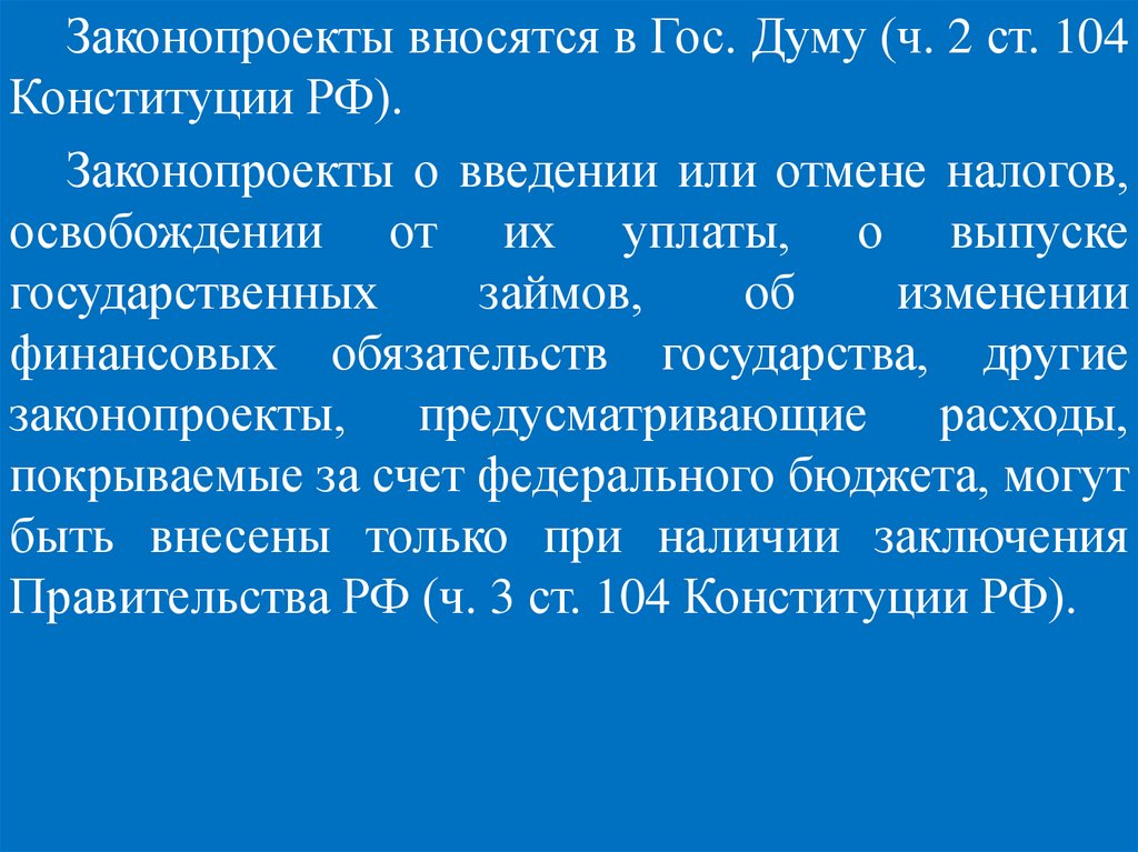 могут вносить Президент РФ, Совет Федерации, Гос. Дума, Правительство