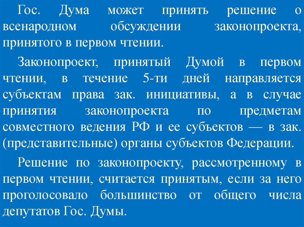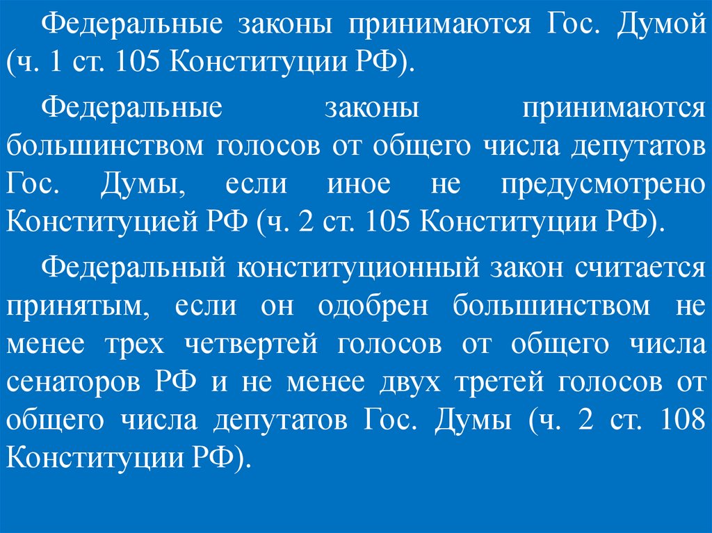 основная тяжесть в принятии федеральных законов падает на Гос. Думу (именно с нее начинается