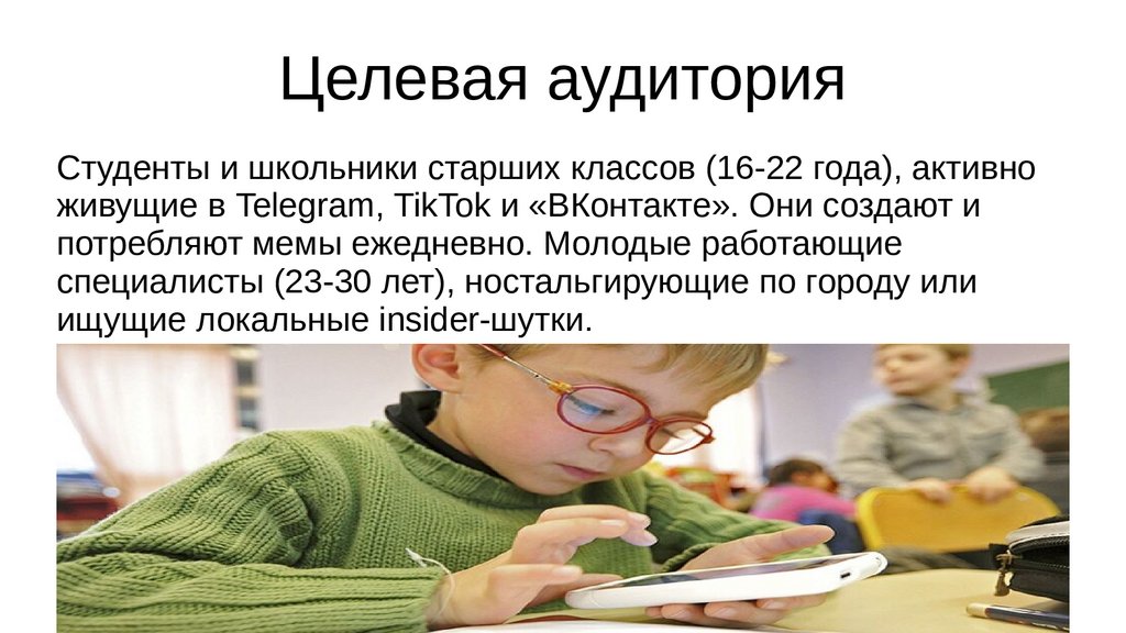 Целевая аудиторияСтуденты и школьники старших классов (16-22 года), активно