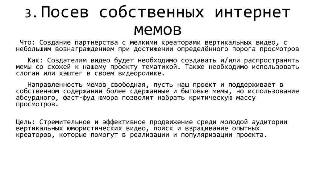 Что: Создание партнерства с мелкими креаторами вертикальных видео, с