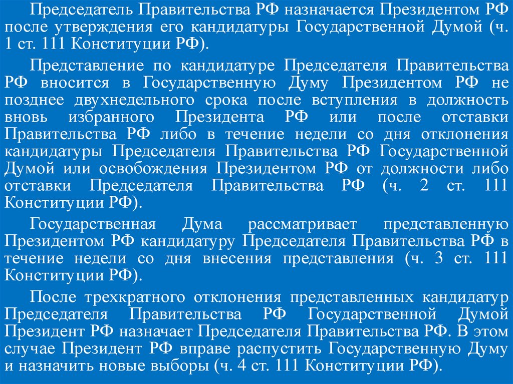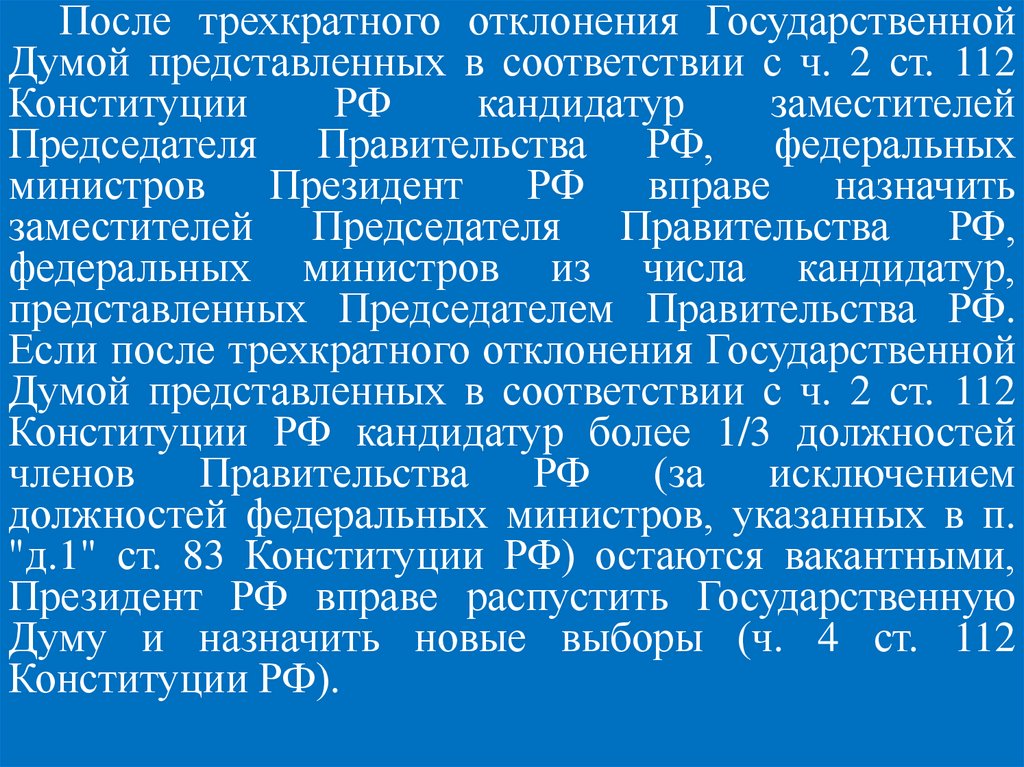 Правительства РФ или о роспуске Государственной Думы
