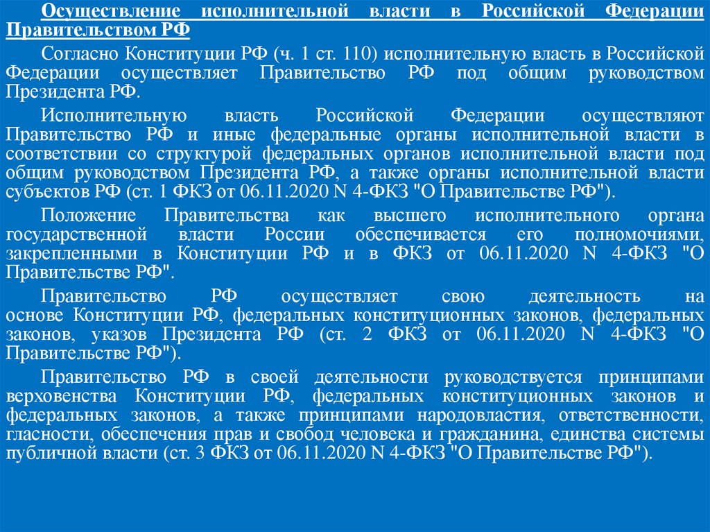 публичной власти (ст. 3 ФКЗ от 06.11.2020 N 4-ФКЗ "О Правительстве РФ").