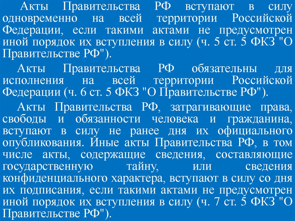 Акты Правительства РФ вступают в силуодновременно на всей территории Российской