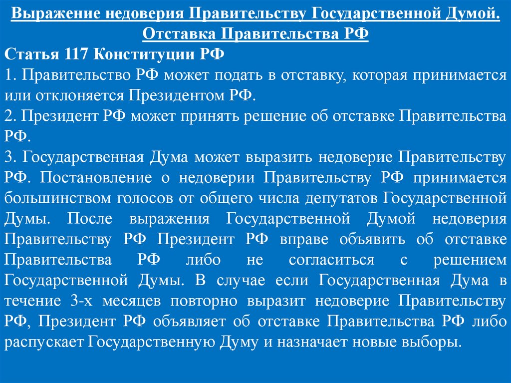 Выражение недоверия Правительству Государственной Думой.Отставка Правительства РФ