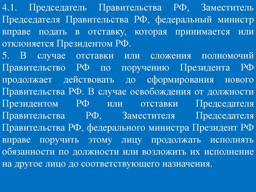 4.1. Председатель Правительства РФ, ЗаместительПредседателя Правительства РФ, федеральный министр