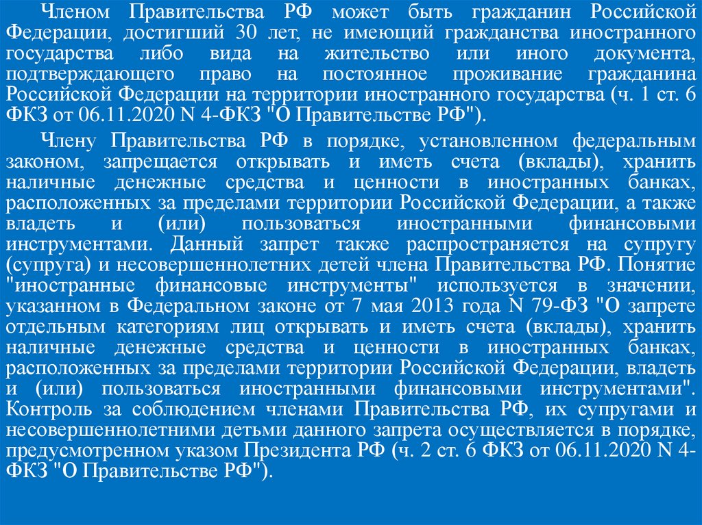 РФ (ч. 3 ст. 4 ФКЗ от 06.11.2020 N 4-ФКЗ "О Правительстве РФ").