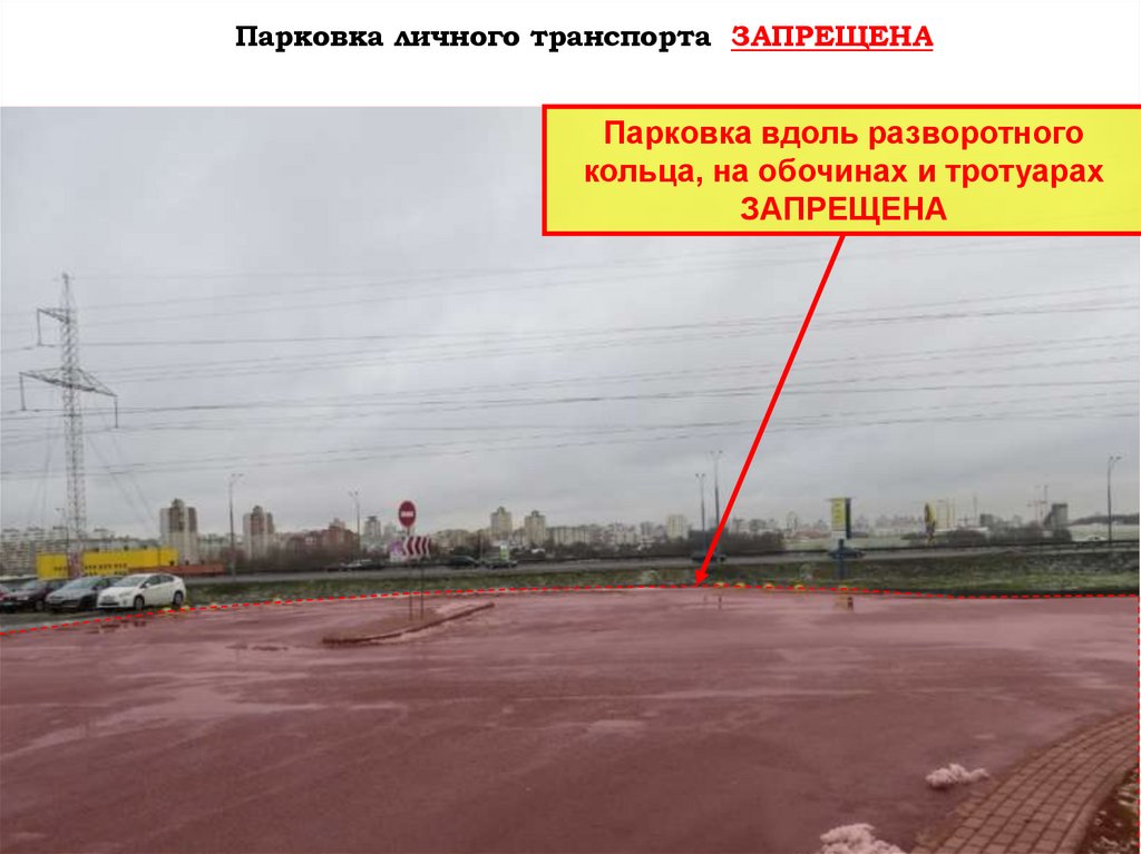 Парковка личного транспорта ЗАПРЕЩЕНАПарковка вдоль разворотного