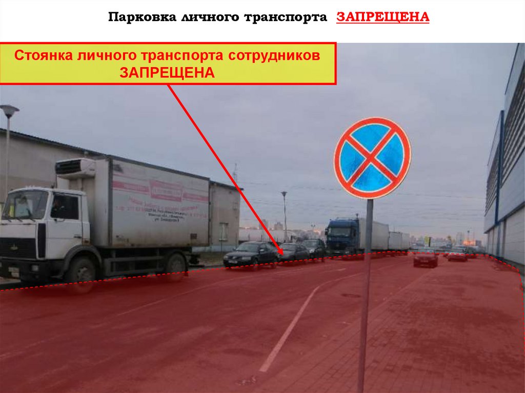 Парковка личного транспорта ЗАПРЕЩЕНАСтоянка личного транспорта сотрудников