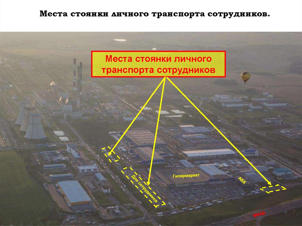 Стоянка личного транспорта сотрудников АБК, РЦ,Гипермаркета