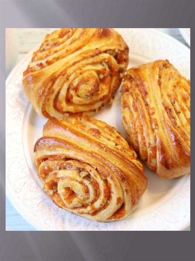 Дрожжевое опарное тесто прослаивают сливочным маслом, перемешанным с мукой и сахарным песком. Прокатывают тесто 2 раза с