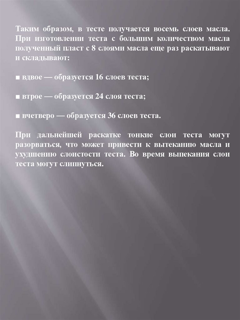 Таким образом, в тесте получается восемь слоев масла.При изготовлении теста с большим количеством масла
