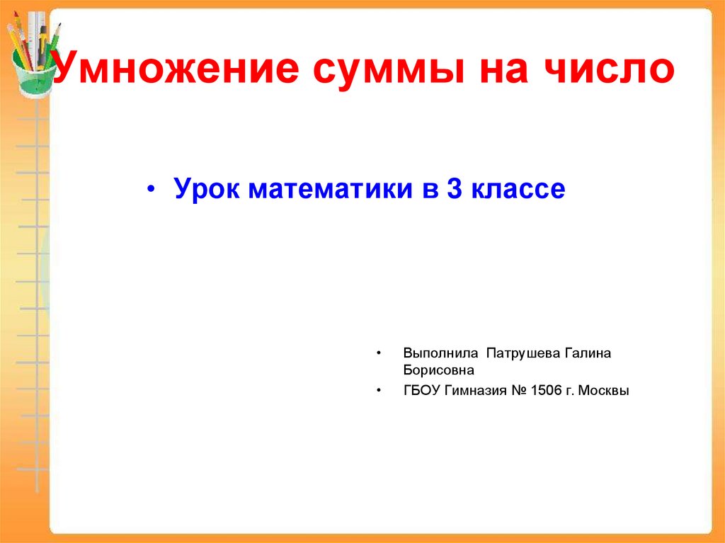 Презентация к уроку _Умножение суммы на число_ ( 3 класс)