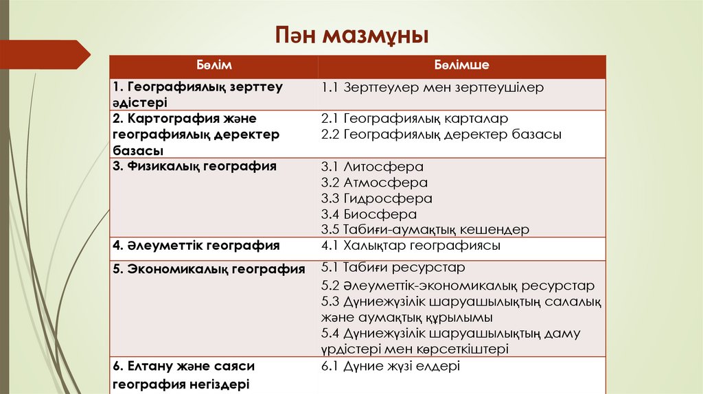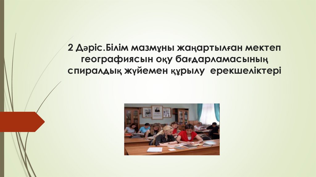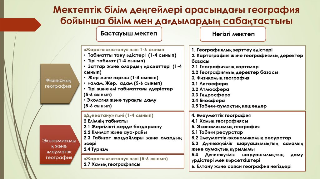 1. 2 Дәріс.Білім мазмұны жаңартылған мектеп географиясын оқу бағдарламасының спиралдық жүйемен құрылу ерекшеліктері