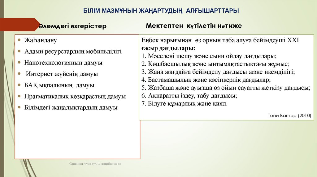 БІЛІМ МАЗМҰНЫН ЖАҢАРТУДЫҢ АЛҒЫШАРТТАРЫӘлемдегі өзгерістер