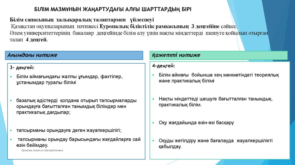 БІЛІМ МАЗМҰНЫН ЖАҢАРТУДАҒЫ АЛҒЫ ШАРТТАРДЫҢ БІРІБілім сапасының халықаралық талаптармен үйлеспеуі