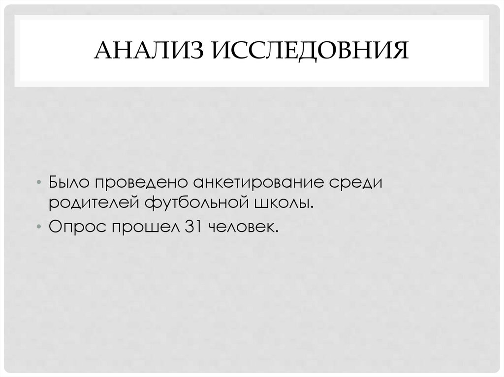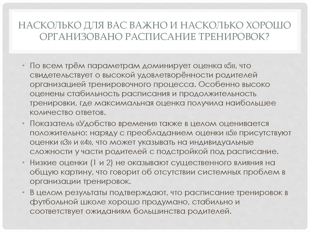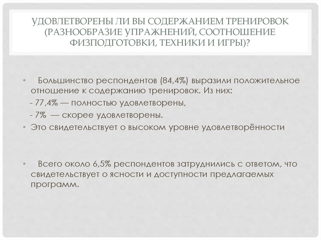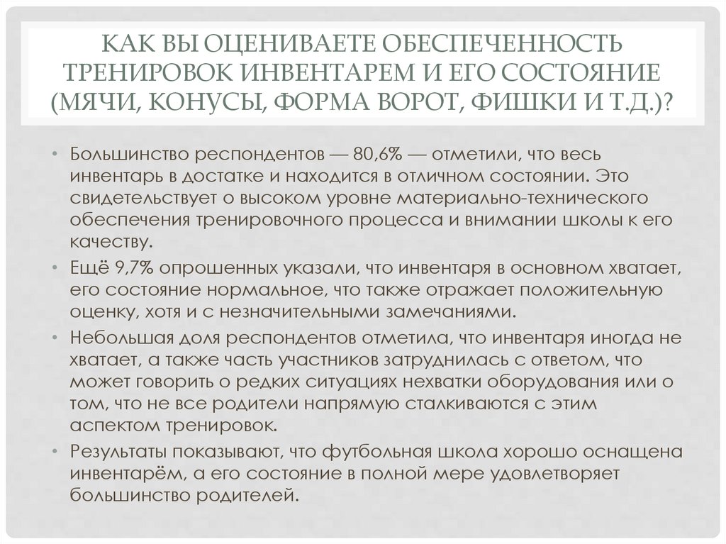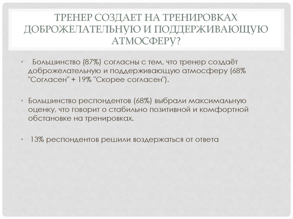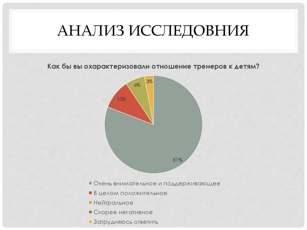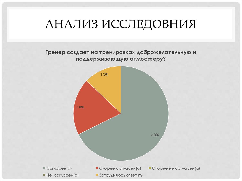 АНАЛИЗ ИССЛЕДОВНИЯТренер создает на тренировках доброжелательную и