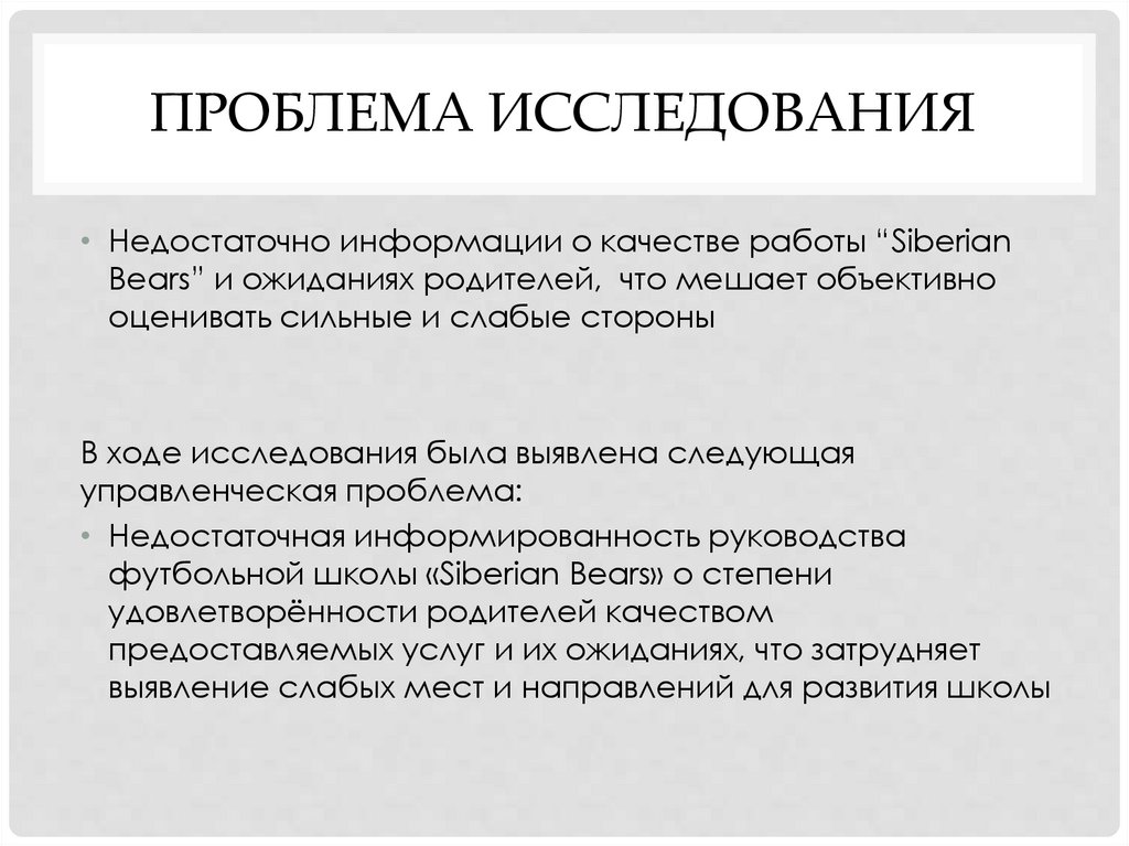 ПРОБЛЕМА ИССЛЕДОВАНИЯ• Недостаточно информации о качестве работы “Siberian