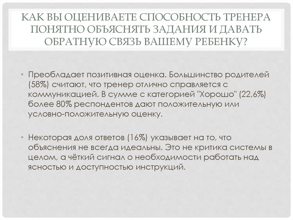 КАК ВЫ ОЦЕНИВАЕТЕ СПОСОБНОСТЬ ТРЕНЕРАПОНЯТНО ОБЪЯСНЯТЬ ЗАДАНИЯ И ДАВАТЬ