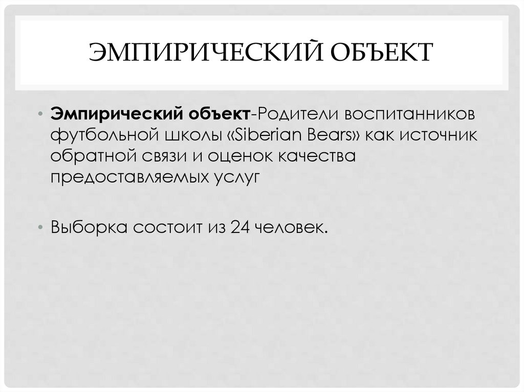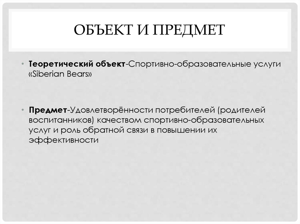 ОБЪЕКТ И ПРЕДМЕТ• Теоретический объект-Спортивно-образовательные услуги