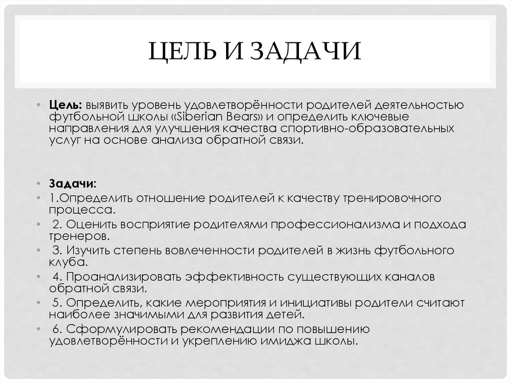 ЦЕЛЬ И ЗАДАЧИ• Цель: выявить уровень удовлетворённости родителей деятельностью