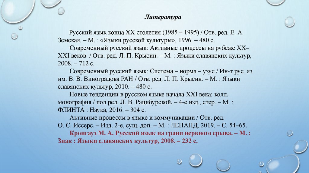 ЛитератураРусский язык конца XX столетия (1985 – 1995) / Отв. ред. Е. А.