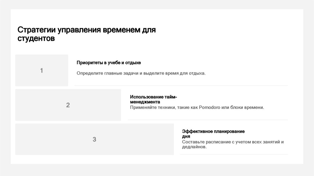 Применяйте техники, такие как Pomodoro или блоки времени.