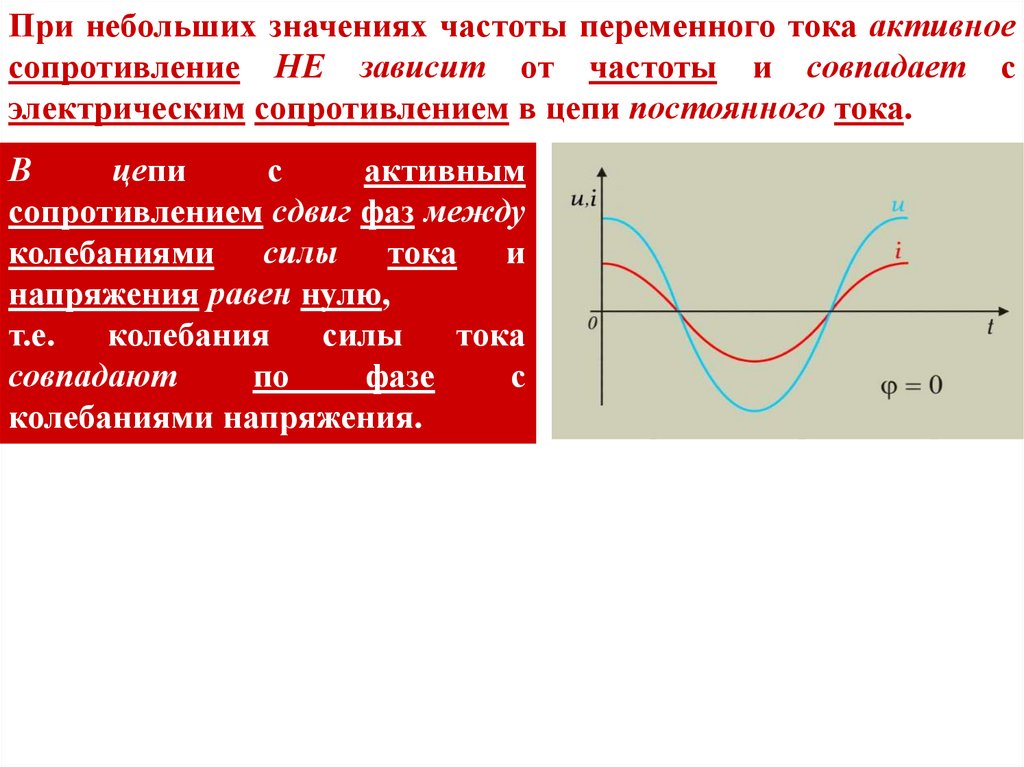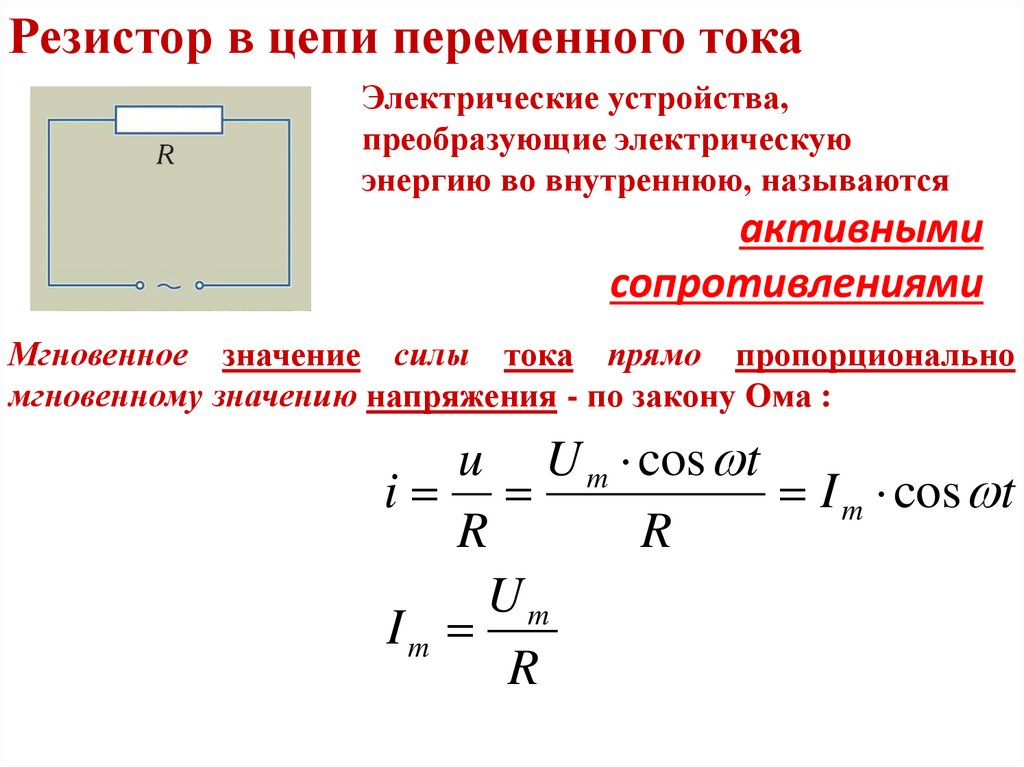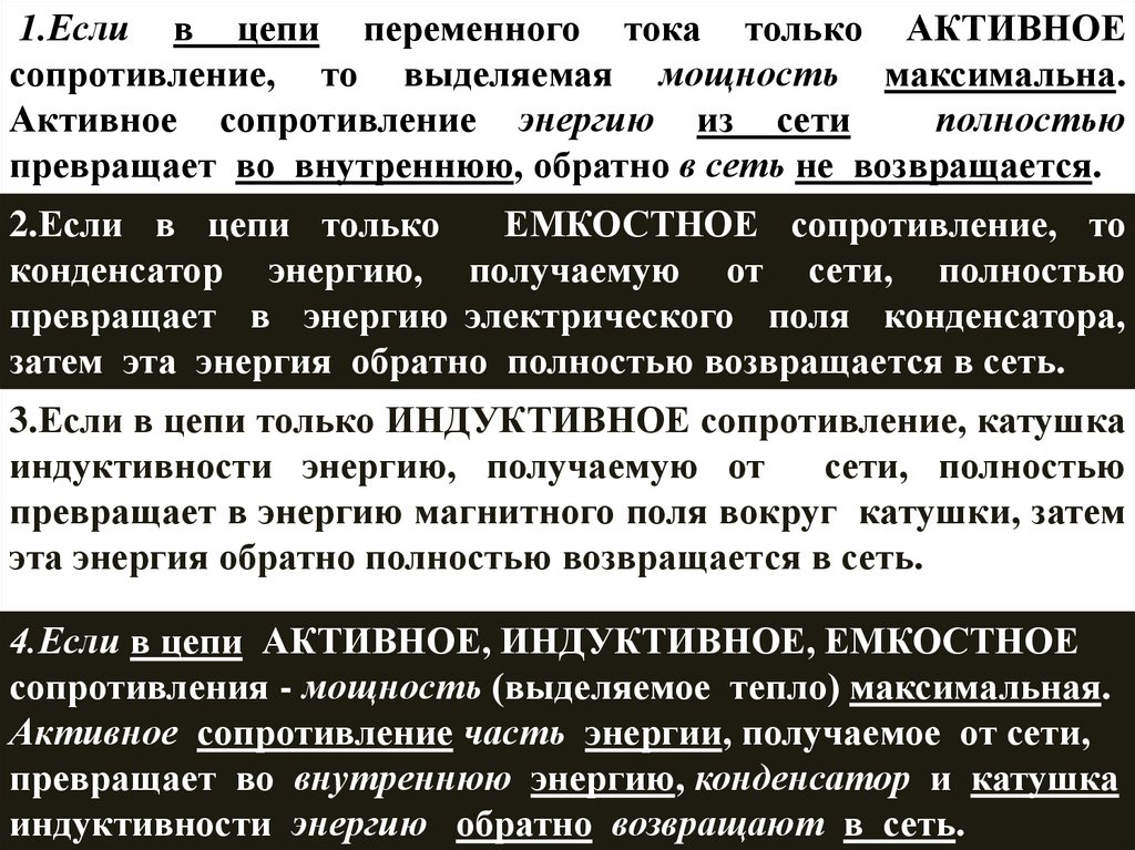 1.Если в цепи переменного тока только АКТИВНОЕсопротивление, то выделяемая мощность максимальна.