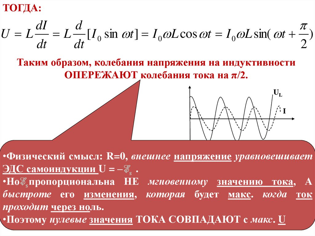 3.Если в цепи только ИНДУКТИВНОЕ сопротивление, катушка