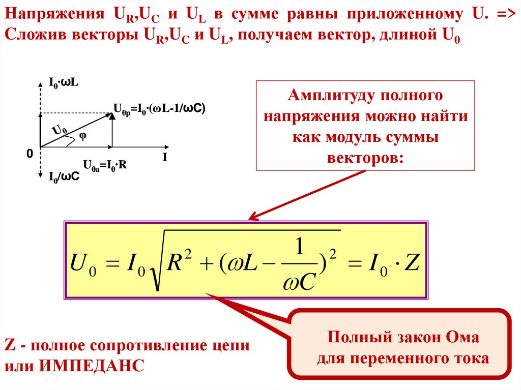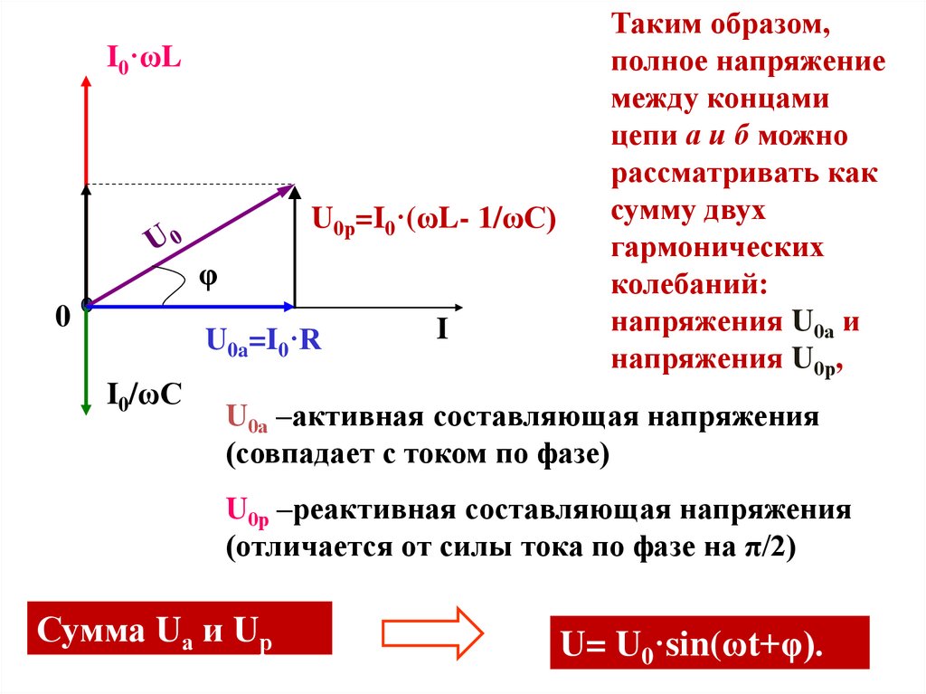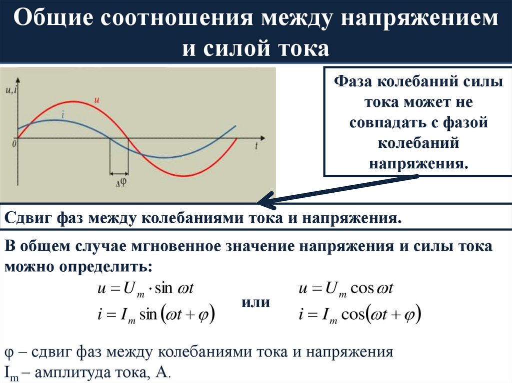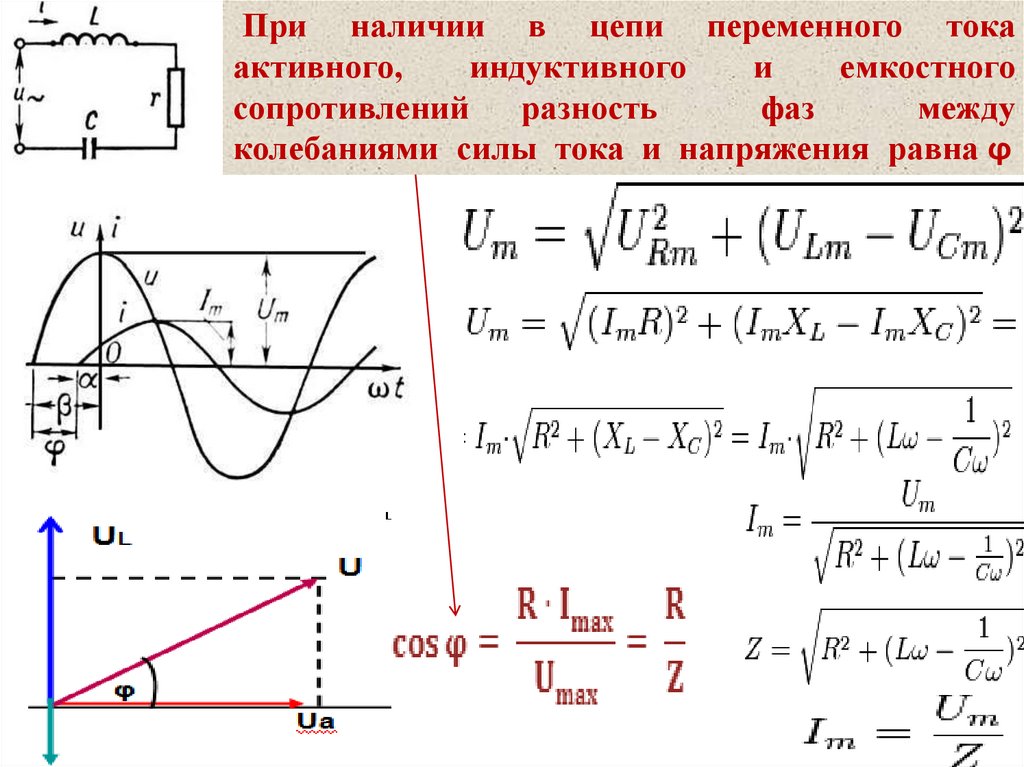 φ – сдвиг фаз между колебаниями тока и напряжения