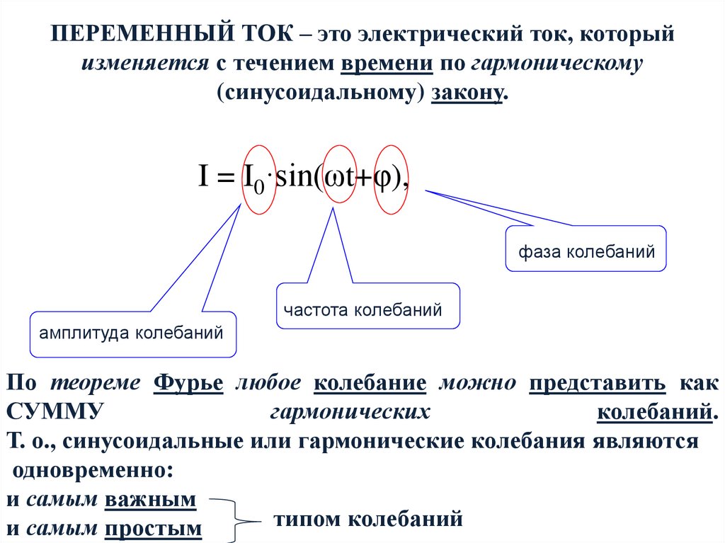 ПЕРЕМЕННЫЙ ТОК – это электрический ток, которыйизменяется с течением времени по гармоническому
