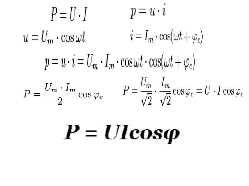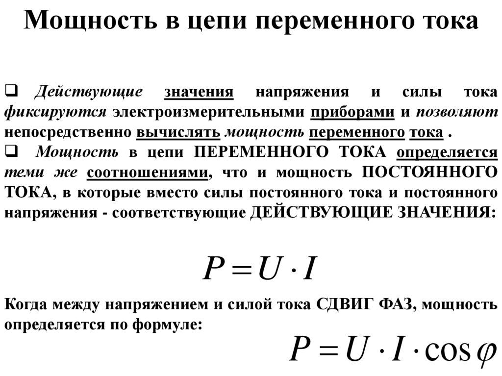 Когда между напряжением и силой тока СДВИГ ФАЗ, мощность