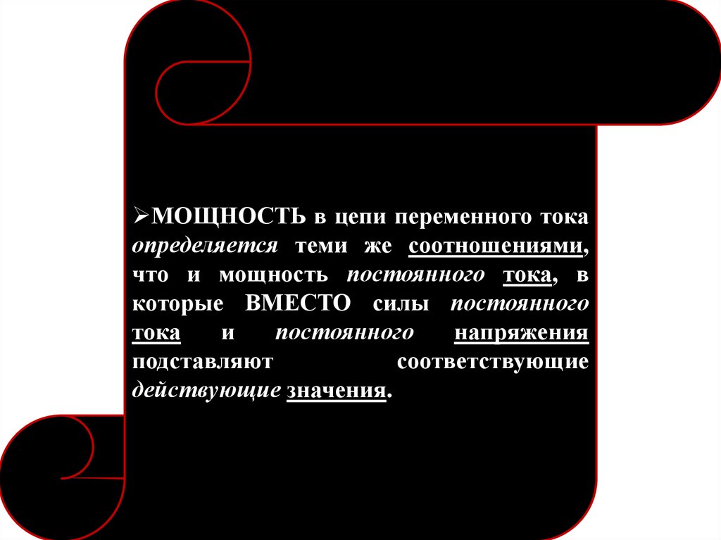 МОЩНОСТЬ в цепи переменного токаопределяется теми же соотношениями,