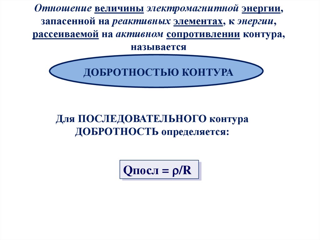 Отношение величины электромагнитной энергии,запасенной на реактивных элементах, к энергии,
