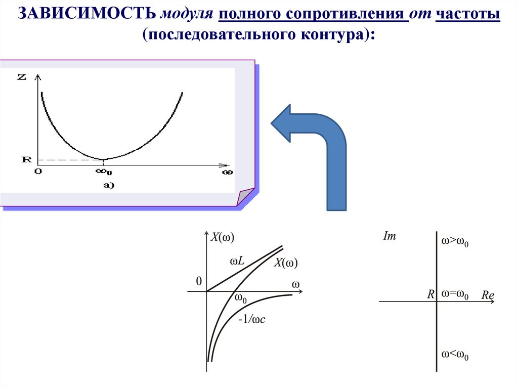 ЗАВИСИМОСТЬ модуля полного сопротивления от частоты(последовательного контура):