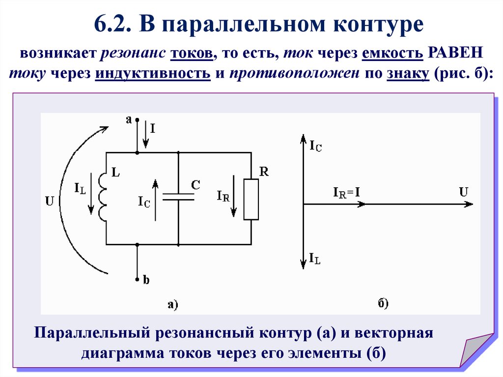 6.2. В параллельном контуревозникает резонанс токов, то есть, ток через емкость РАВЕН