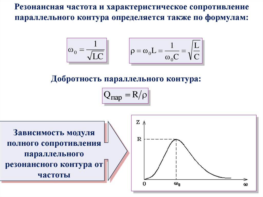 Резонансная частота и характеристическое сопротивлениепараллельного контура определяется также по формулам:
