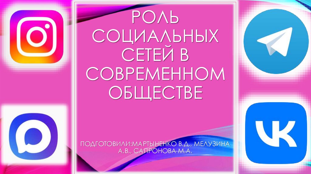 1. Роль социальных сетей в современном обществе Подготовили:Мартыненко В.д., Мелузина а.в., сапронова м.а.
