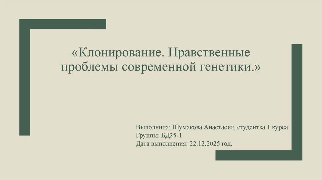 1. «Клонирование. Нравственные проблемы современной генетики.»