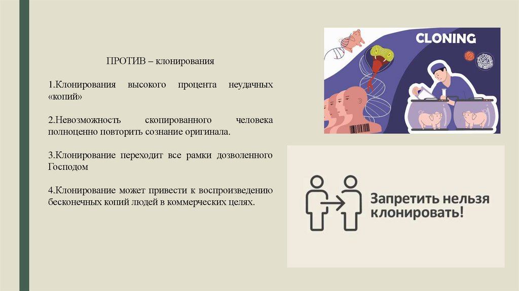 ПРОТИВ – клонирования1.Клонирования