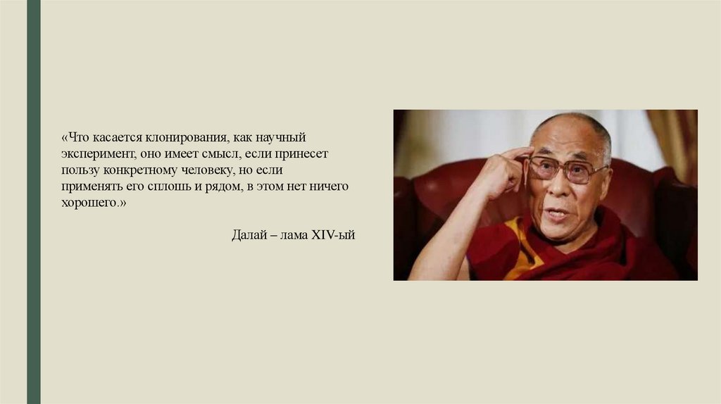 «Что касается клонирования, как научныйэксперимент, оно имеет смысл, если принесет