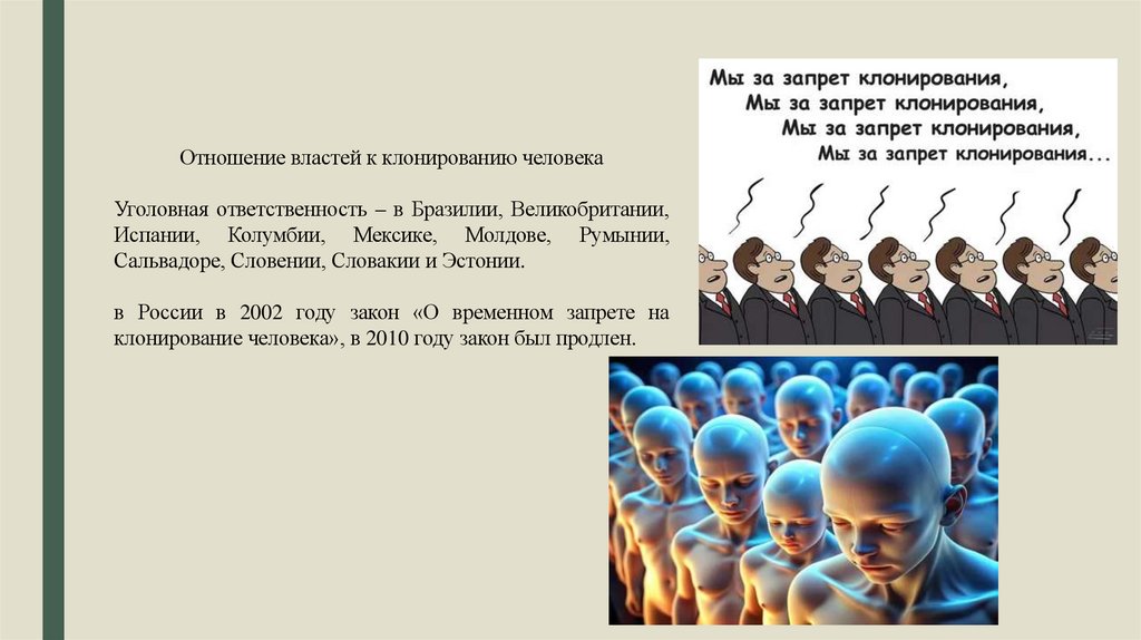 Отношение властей к клонированию человекаУголовная ответственность – в Бразилии, Великобритании,