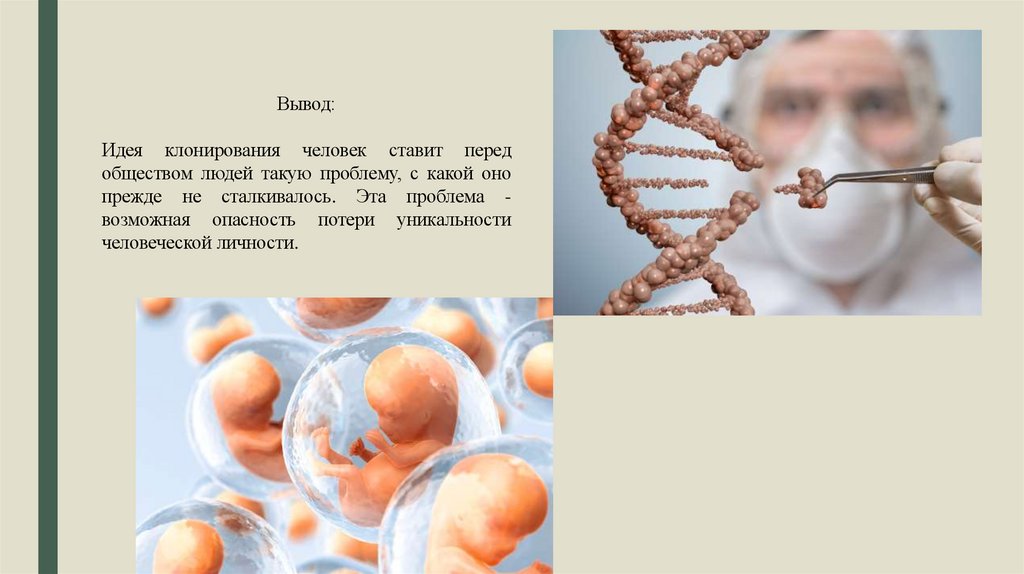 Вывод:Идея клонирования человек ставит перед